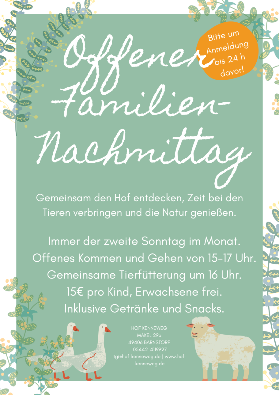 Unser Familiennachmittag lädt Familien dazu ein, den Hof in entspannter Atmosphäre kennenzulernen. Kinder können sich frei auf den Weiden bewegen, spielen und unsere Tiere aus nächster Nähe entdecken. Unter dem Sternenzelt stehen schattige Plätze, Snacks und Getränke bereit. Um 16 Uhr treffen wir uns zur gemeinsamen Fütterung der Tiere. Ein ruhiger Hofnachmittag für kleine und große Menschen, die Zeit draußen und mit Tieren genießen möchten.